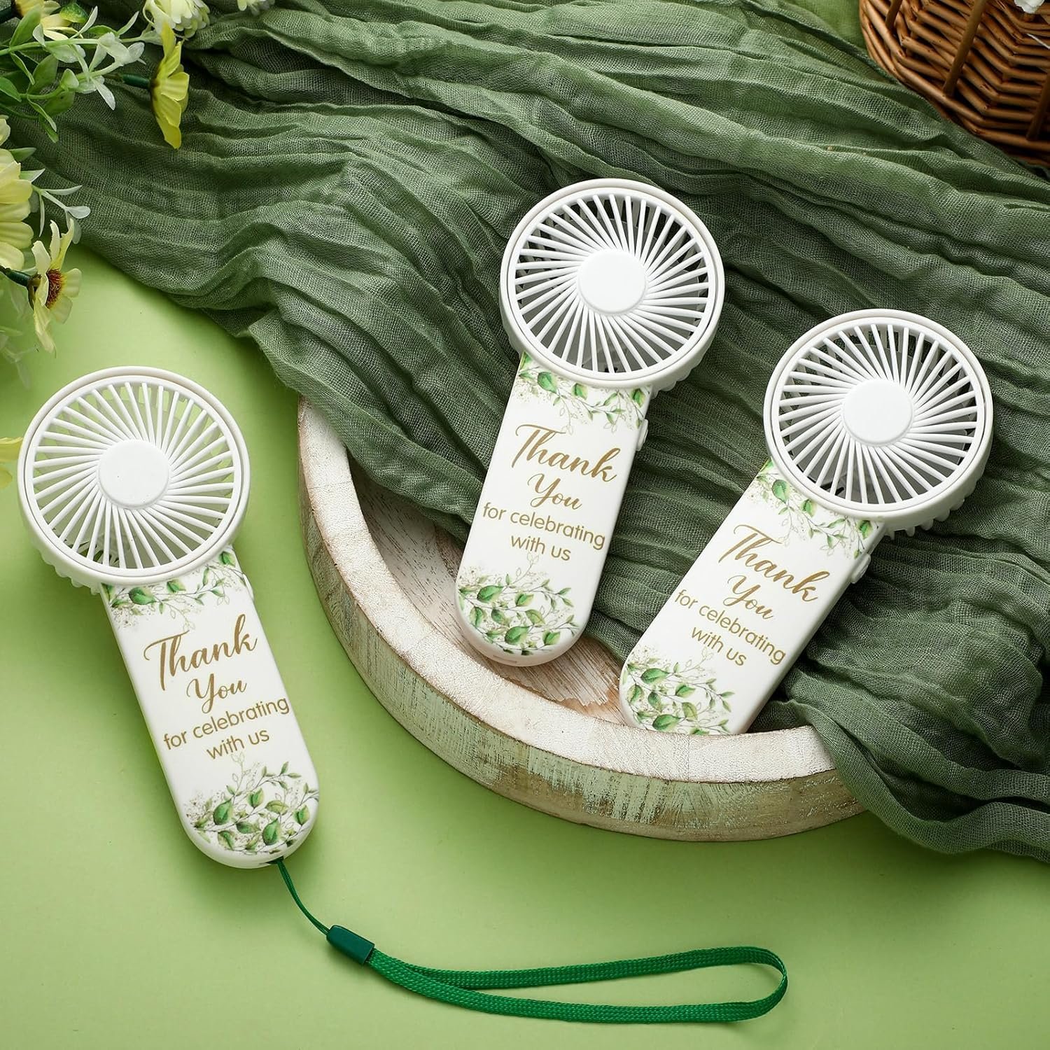 Wedding Themed Design: delight guests with 50 eucalyptus-inspired mini handheld fans adorned with wedding quotes, suitable for enhancing your special day’s charm; A thoughtful touch for creating cherished memories